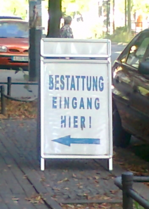 (Btw.: Als das eine Kind neulich, ohne wirklich nach fahrenden Autos zu schauen, fast über die im Bildhintergrund verlaufende Straße gelaufen wäre, bemerkte das andere Kind trocken: „Wenn das schief gegangen wäre, hätten wir dich da gleich reinbringen können.“)