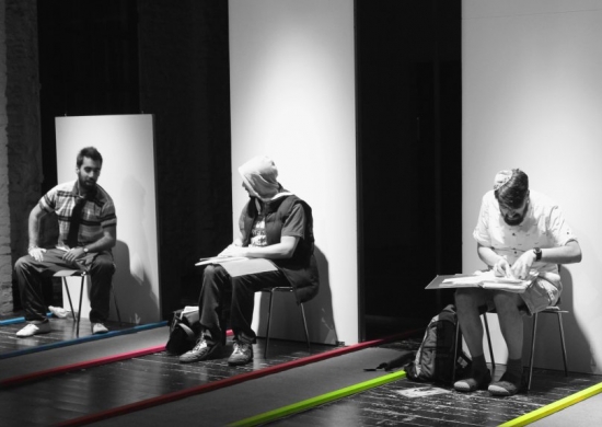 Berlinerin? Deutscher? Flüchtling? Immigiert? Hier geboren, aber andernorts aufgewachsen? Was macht uns zu Berlinern? Wer darf sich so nennen, wer nicht, wann kommt wer an, wird wieder weggeschickt, wird aus- oder eingegrenzt? Gestern hatte ich die Ehre, der Generalprobe des neuen Theaterstücks ECHTER BERLINER !!!! IHR NICHT FUCK YOU des English Theatre Berlin beizuwohnen (Fotos hier in meinem Flick-Stream). Das experimentelle Stück ist eine Art Dokumentations-Theater: Der gesamte Text ist aus Zitaten zusammengesetzt; hierfür wurden mehrere Wochen lang Interviews mit Menschen mit den unterschiedlichsten Herkunftshintergründen geführt. Deren Erfahrungen, von der Behandlung durch Behörden über Alltagsdiskriminierung und Auseinandersetzung mit Rassismus bis hin zu Sprachbarrieren und eigener wie umgebungsseitiger Infragestellung spiegeln sich nun in berührender Weise in dem sehenswerten Kunst-Stück wieder. Sie tauchen nicht nur in den Sprechtexten auf, sondern werden durch Projektionen ins Bühnenbild immer wieder auch direkt in die Aufführung einbezogen.Überhaupt, das Bühnenbild: Mit wenig Mitteln hat das English Theatre Berlin hier interessante Akzente gesetzt. Einfache UK-Latten werden mit Papier bespannt zu flexiblen Möbeln, mit Holzpappe beklebt zu mobilen Wänden, oder bilden in bunt lackierter Variante auf dem Boden wohl das Farbleitsystem in der Ausländerbehörde ab. Verschweißtes Metall, Papier, ein Kassettenrekorder, viel mehr braucht es nicht.