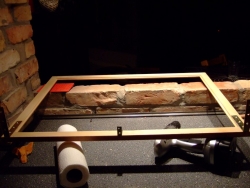 Das Anschrauben klappte dann erstaunlich gut, nachdem ich die schlaue Idee hatte Trick 17 anzuwenden: Die blöden Schrauben, die mir immer wieder abrutschten, wurden erst mal mit einem nicht allzu zarten Hammerschlag auf ihren Hinterkopf im Holz fixiert und so bewegungsunfähig gemacht. Erst danach drehte ich sie mit dem Akkubohrer in den Rahmen – handwerklich vielleicht keine saubere, aber zumindest eine effektive Taktik..