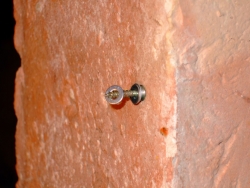 10) Während der Leimtrocknungszeit der Tellerhalter entschied ich mich dafür die Winkel schon mal am Bilderrahmen festzumachen. Mangels ausreichend kurzer Schrauben wurde dies zunächst einmal eine kleine Perlenfädelaktion, da ich nämlich jeweils drei kleine Unterlegscheibchen auf jede Schraube tüddeln musste, sodass diese dann durch den zusätzlichen Abstand ausreichend kurz war um nicht auf der anderen Seite des Rahmens wieder herauszustieksen.