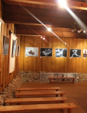 Das eigentlich Besondere ihres Platzes aber ist die alte Scheune, in welcher Piotr seine Galerie untergebracht hat. Mit seinen Ausstellungen hat er von Buda Ruska aus auch über die Region hinaus anscheinend schon einige Aufmerksamkeit erregt.