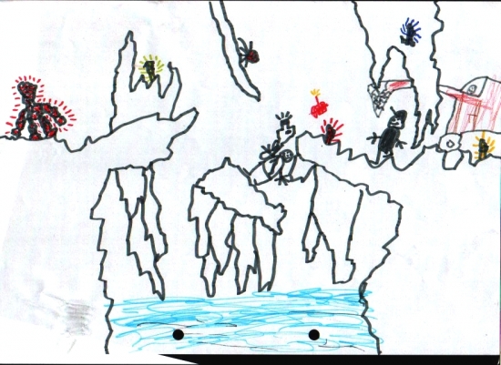 „Die Monster (kann man auch Kristallfresser zu sagen) fühlen sich von den Forschern angegriffen, weil die die Kristalle aus der Erde ausgraben wollen. Die Kristallfresser versuchen, ihre Kristalle zurückzukriegen, wobei die Forscher, die wissen wollen, woher das plötzliche Erdbeben kommt, die Monster sehen und unter der Erde mit den Monstern kämpfen. Und ein paar Kristallfresser sind auch schon im Gefängnis. So, das war’s.“