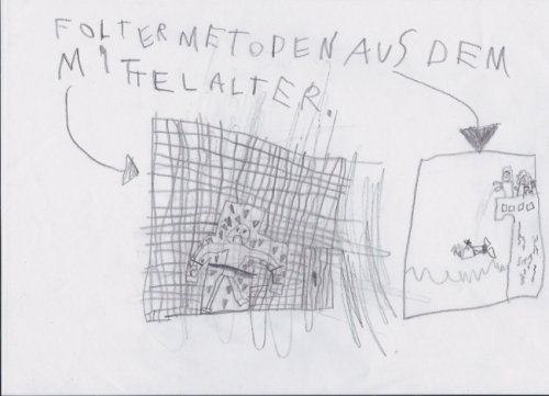 Erstens: Der Große bekommt einen Tresor mit 4-stelliger Zahlenkombination für seine gemeinen Gruselbilder – damit die kleine Schwester die Kunstwerke nicht sieht, jedenfalls nicht vor sechs (also so alterstechnisch). (Vierstellige Kombination: Sie rechnet noch nicht im 1000er-Bereich^^) Ach so, und einen Maulkorb bekommt er auch, damit er ihr sein Weltwissen in Sachen Foltermethoden, Mord und Totschlag jedenfalls vorerst nicht weitererzählen kann. Oder Gruselgeschichten abends im Bett.