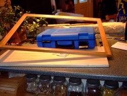 Als passionierte Geschichtenerzählerin hatte ich schon lange Lust, mit meinen Kindern Kasperletheater zu spielen. Nun gibt es im Handel zwar die unterschiedlichsten Ausführungen derselben zu kaufen, aber die, die mir gefielen, waren immer viel zu sperrig oder / und zu teuer. Als ich in Frankreich ein Puppentheater aus Holz sah, welches nicht wie ein festes Möbelstück in den Raum gestellt werden, sondern wie ein Rahmen auf den Schrank geräumt werden kann, kam mir die Idee: Mit einem normalen Bilderrahmen müsste man so etwas doch auch ganz einfach selbst herstellen können! Und so tat sie.