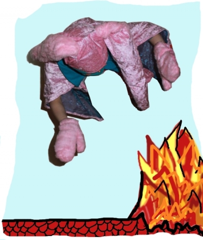 „Das war knapp, fast hätte ich mir beim Landen den Pelz versengt. Ist das heiß hier! Aber ich bin da. Hasenfüße, stillgestanden! Jetzt wird alles gut!“