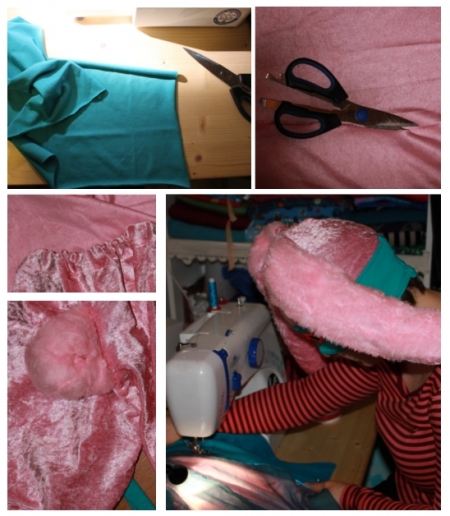 Und dann gings richtig ab. In mir brodelte ein Kaninchen. Ein heldenhaftes Superhasi mit langen Ohren und schlauen Karotten als Zauberwaffen. Herein also zu Blättern, Stiften und , ihr werdet es nicht glauben, Hasi, meiner gleichnamigen Nähmaschine, wie geschaffen für ein solches Projekt.
